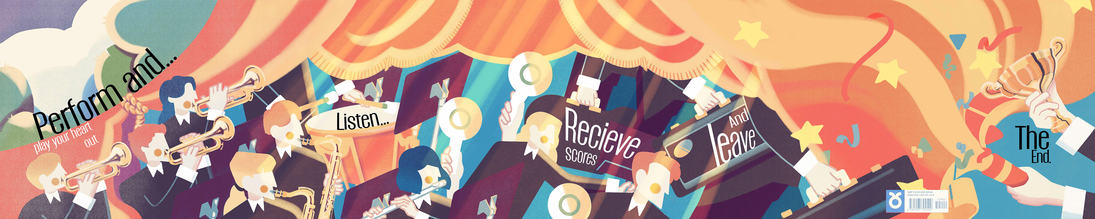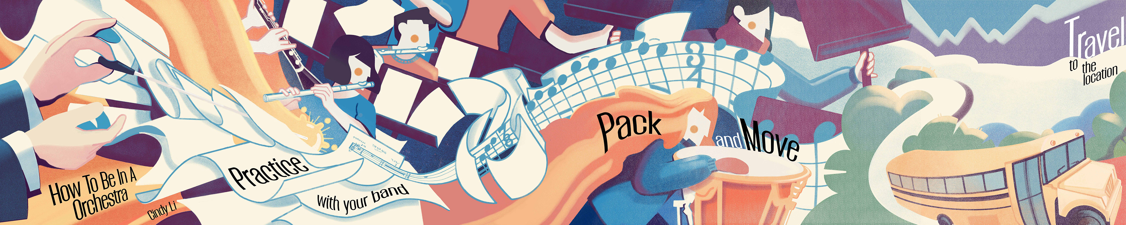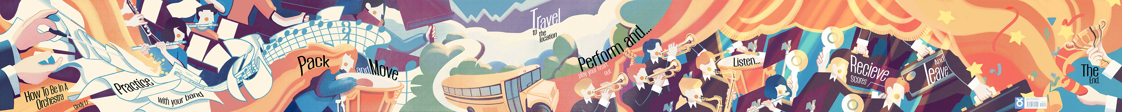 For my thesis I wanted to design an accordion book based on my orchestra experience. The book illustrates, "How To Be In An Orchestra," accompanied with fun words.