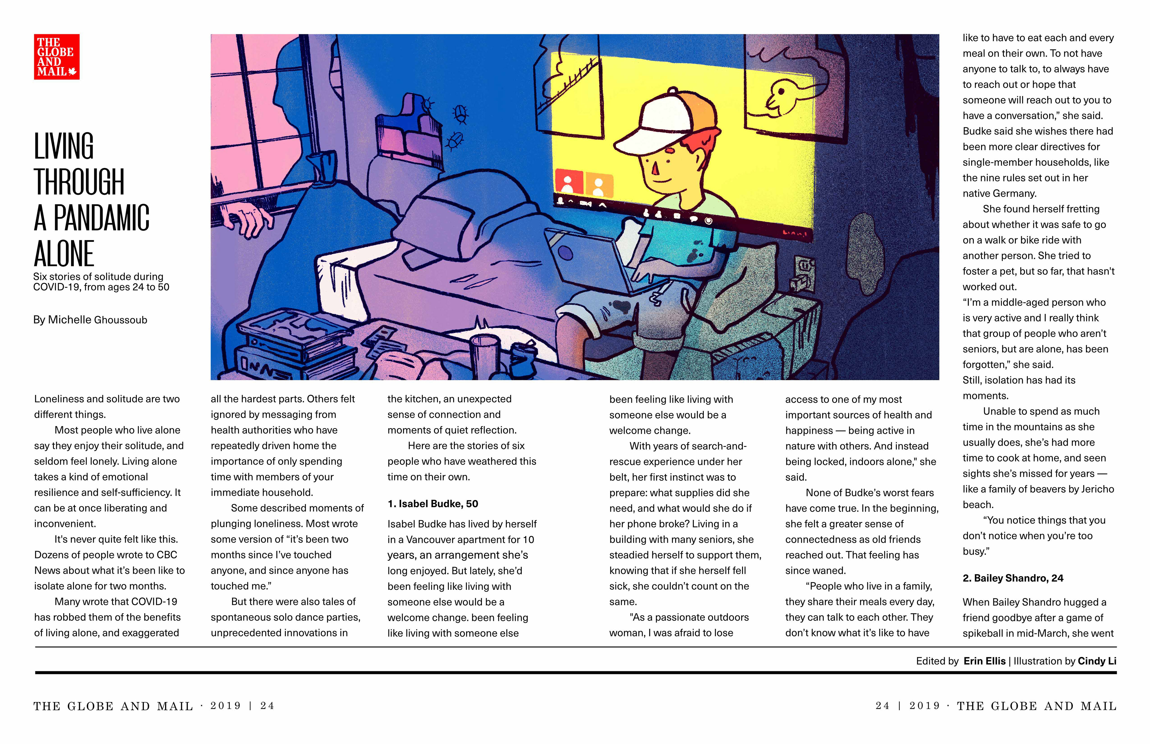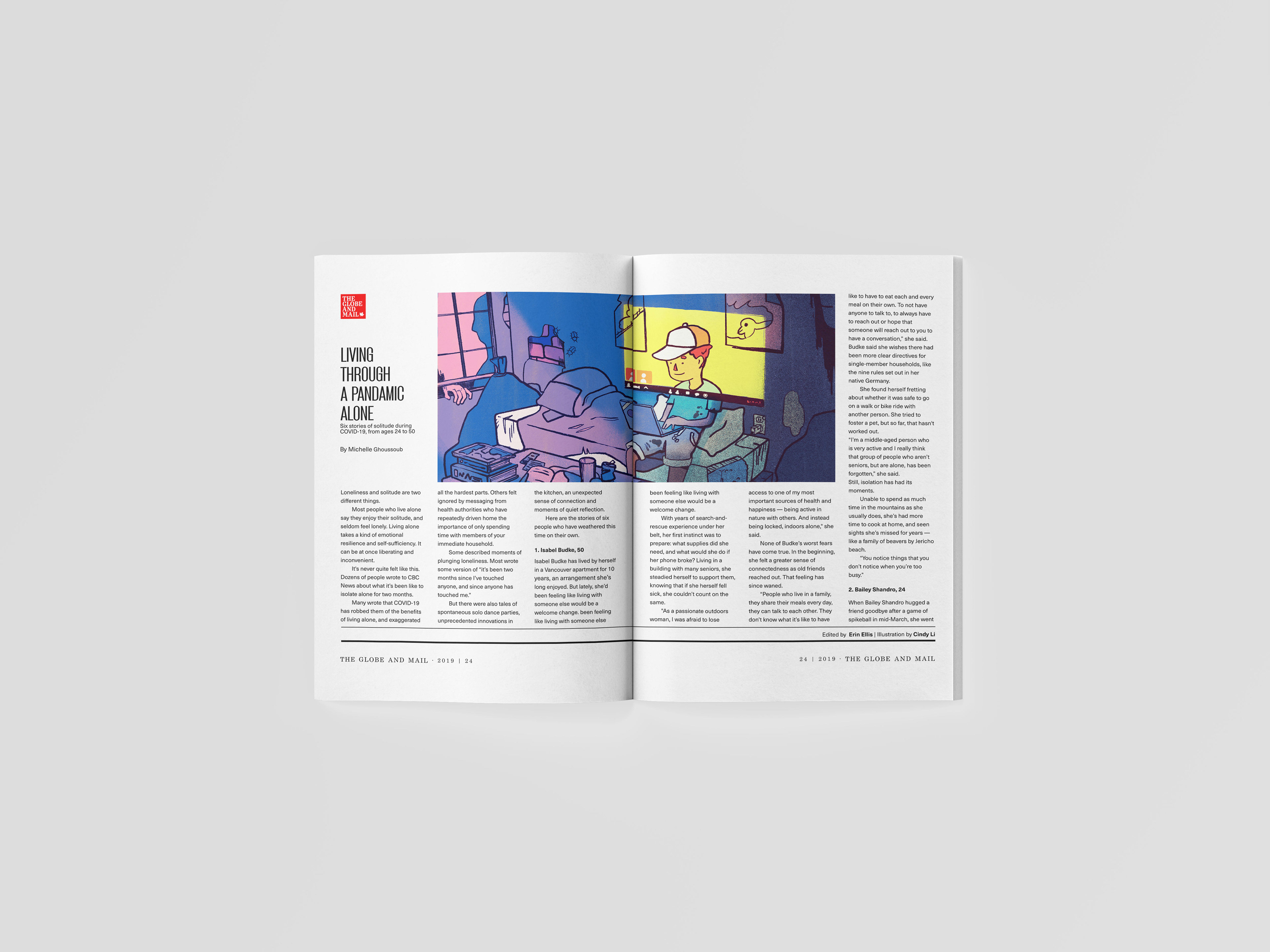 Back in 2019 during the covid pandemic, I wanted to create an editorial illustration about the loneliness of isolation. I decided to design a visual layout for my illustration to fit an editorial article.