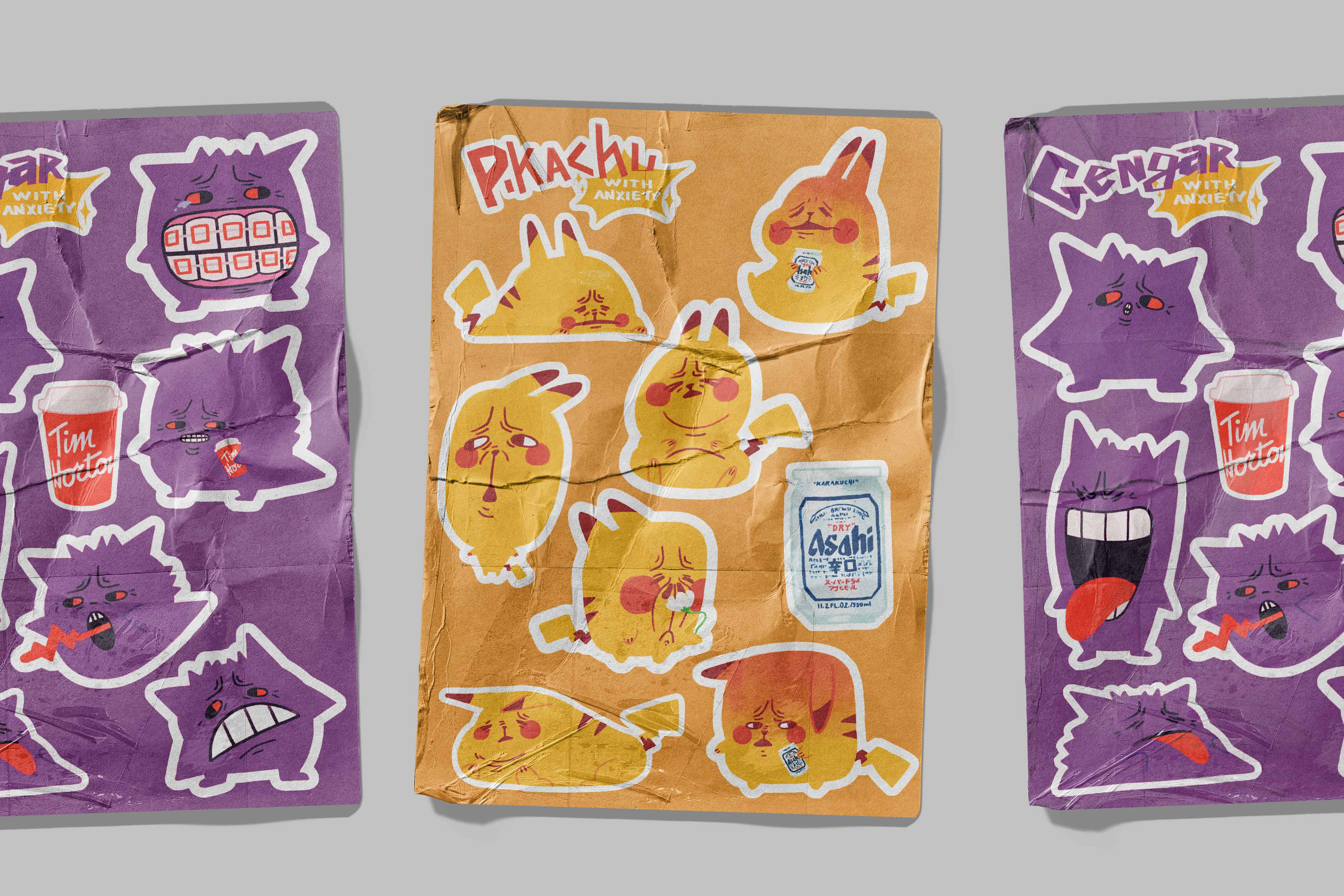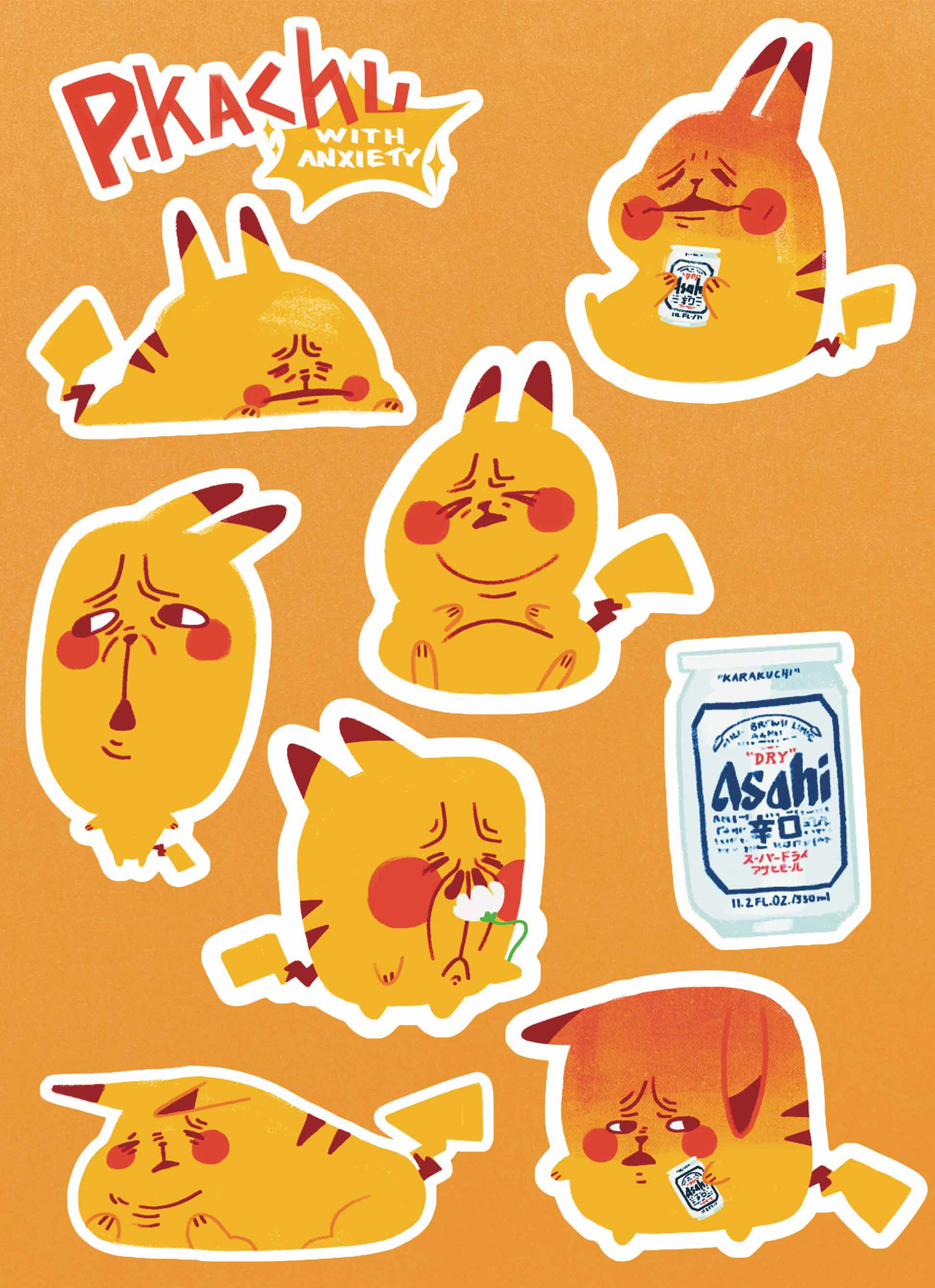 I illustrated fun and quirky drawings of Pokémon characters filled with anxiety
