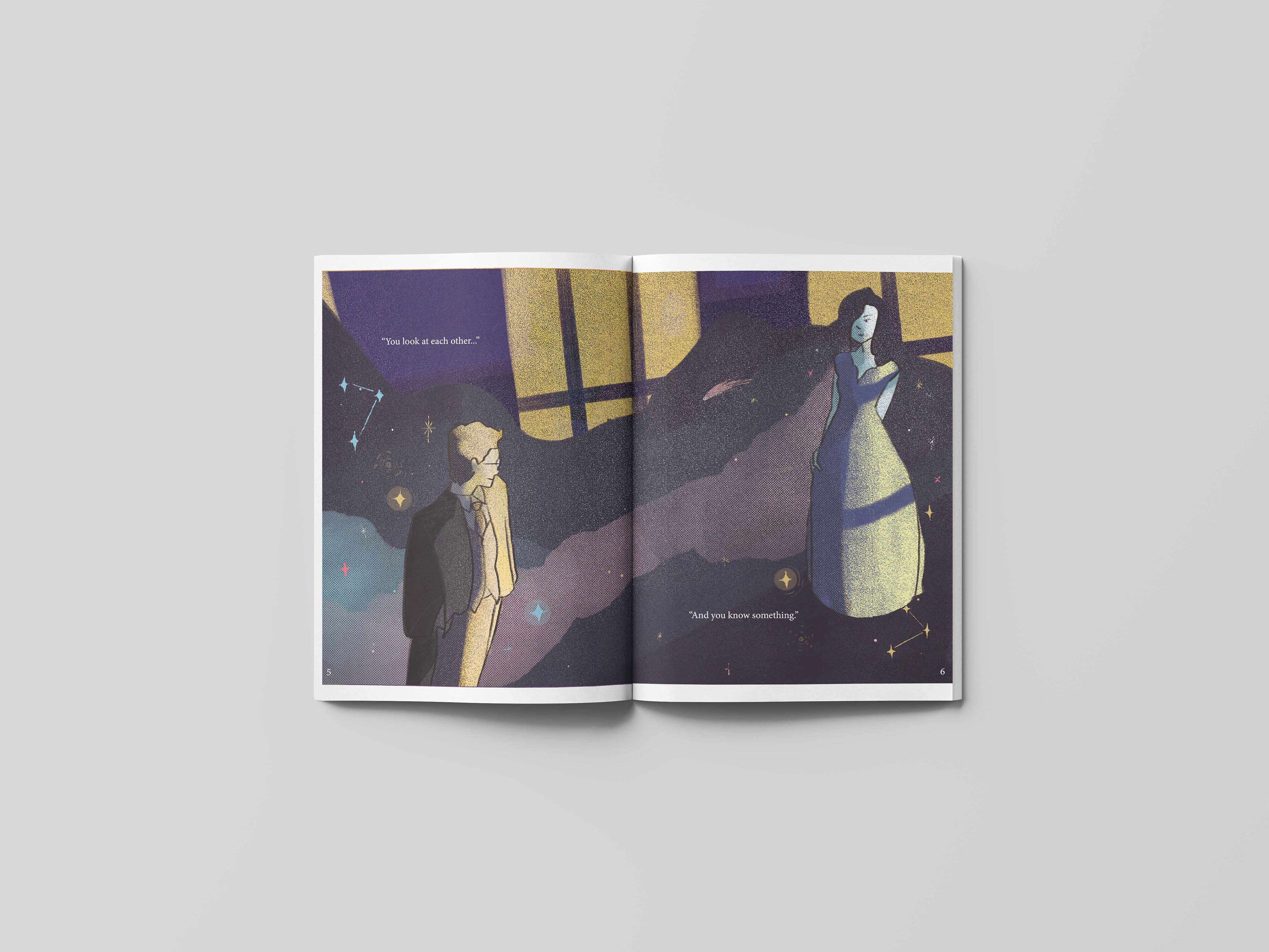 I illustrated three drawings paired with a very meaningful text that explores the idea of someones experiences of the, "First Glance."